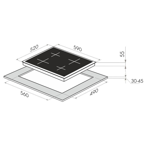 • Размеры для встраивания (ШхГ) 56 x 49 см