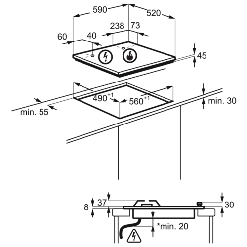 • Размеры для встраивания (ШхГ) 56 x 48 см