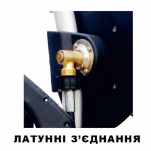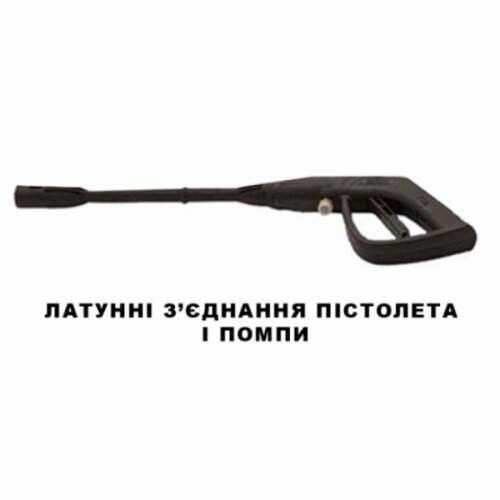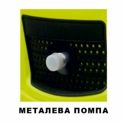 Прочная, устойчивая конструкция. Насос металлический, соединения помпы и пистолета выполнены из латуни;