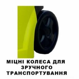 удобная транспортировка. прочные колеса дают возможность легко перевезти агрегат к месту работы. для переноса есть ручка;
