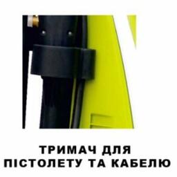 фиксаторы. оснащена удобными держателями для пистолета и электрического кабеля. шланг наматывается на барабан;