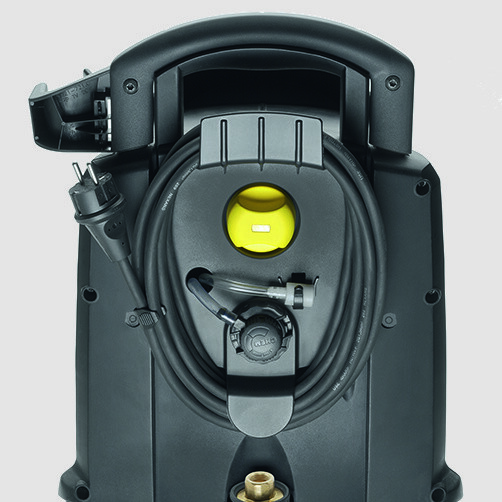 10-метровый шланг расширяет диапазон манипуляций с устройством, а специальная катушка обеспечивает удобное хранение оснастки в режиме бездействия;