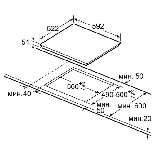 - Размеры для встраивания (ШхГ) 56 x 49 см