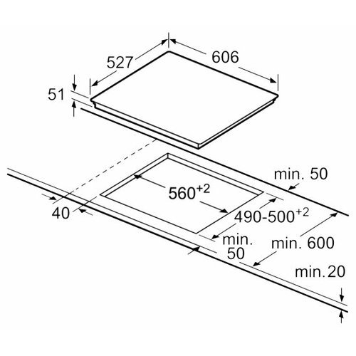- Размеры для встраивания (ШхГ) 56 x 49 см