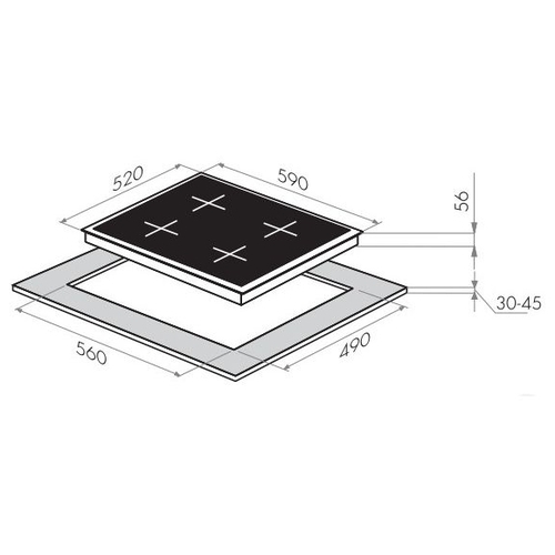 - Размеры для встраивания (ШхГ) 59 x 46 см