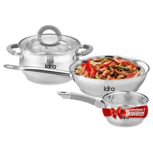 - Состав набора кастрюля, крышка, ковш, сковорода