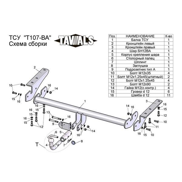 - Тип шара фаркопа Тип A; Тип B
