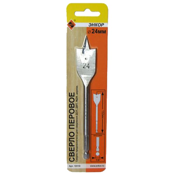 Сверло по дереву Энкор 19110, 24 мм, перовое с длиной 152 мм