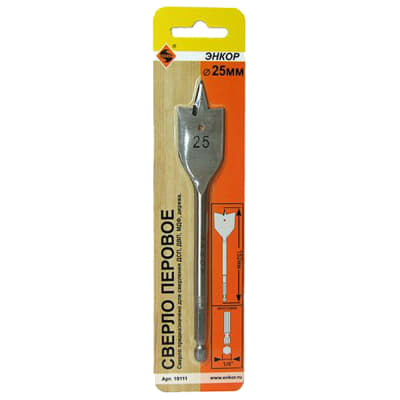 Сверло по дереву Энкор 19111, 25 мм, перовое с длиной 152 мм
