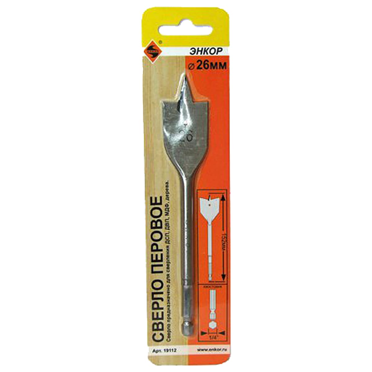 Сверло по дереву Энкор 19112, 26 мм. перовое с длиной 152 мм