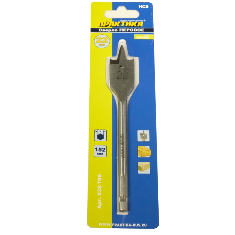 Сверло по дереву перовое Практика Профи 22х152 мм, 1 шт., блистер, 032-799
