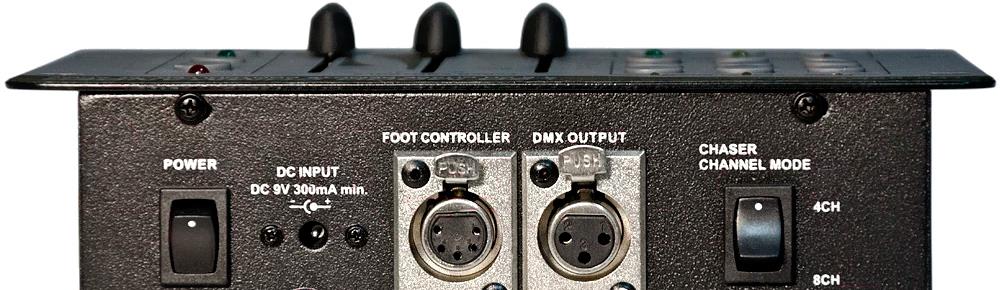 - Выходы DMX out (3 pin XLR), DMX out (5 pin XLR)