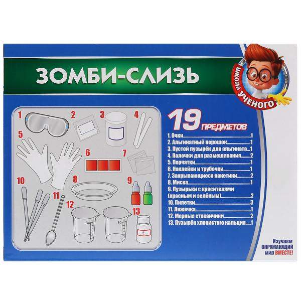 - Состав набора очки; альгинатный порошок; пустой пузырек; 2 палочки для размешивания; перчатки; наклейки и трубочки; закрывающиеся пакетики 2; миска; пузырьки с красителями 2; 3 пипетки; ложечка; 2 мерных стаканчика; пузырек хлористого кальция