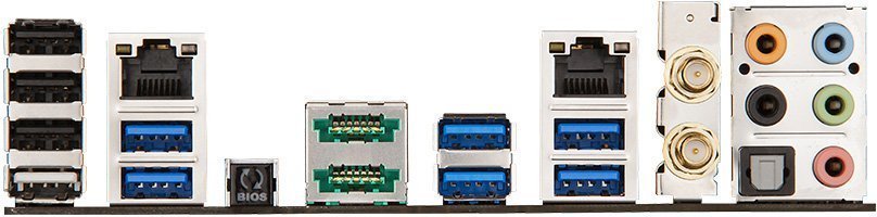 - Разъёмы на задней панели 4 x USB 2.0, 6 x USB 3.0, 2 x eSATA, 2 x RJ-45, S/PDIF (оптический)