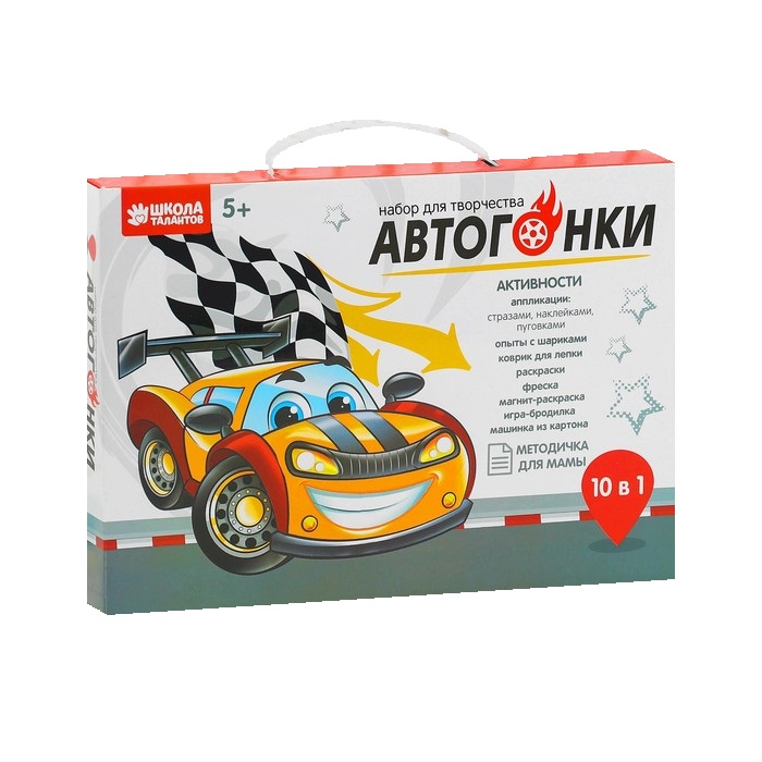 - Состав набора коврик для лепки; фреска с фольгой; пластилин; восковые карандаши; 2 раскраски; методичка; 5 воздушных шаров; аппликация пуговицами; аппликация стразами; аппликация наклейками; игра-бродилка; магнит раскраска; машинка пластиковая