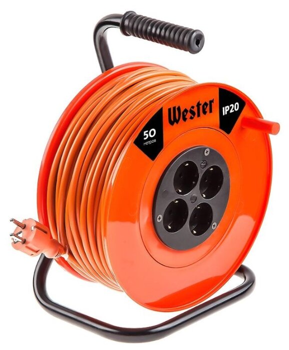 Wester Удлинитель на катушке 50м ПВС 3x1мм 16А IP20 4 розетки с/з K16/50