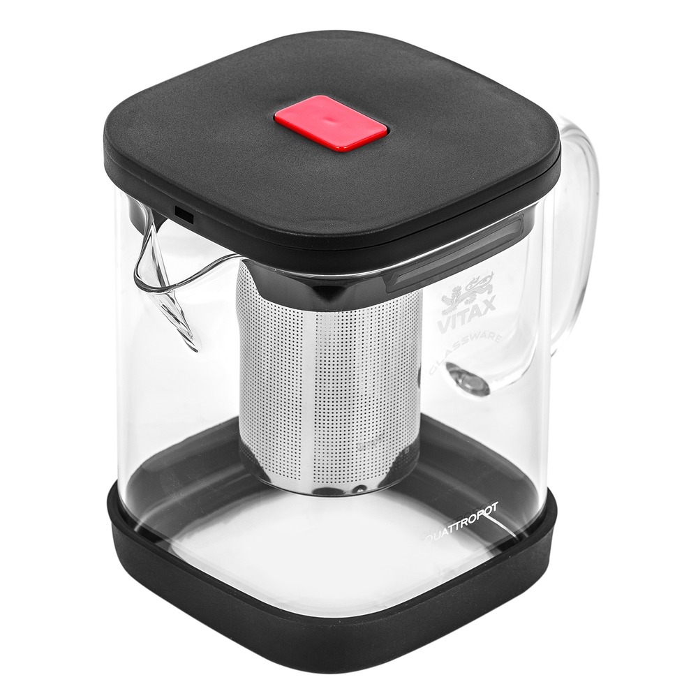 Чайник заварочный Vitax VX-3307 Warkworth вместимостью 1.1 л изготовлен из прозрачного, жаропрочного стекла, черного пластика и нержавеющей стали. Оригинальная форма заварочного чайника сделает его эффектным дополнением любой кухни. Для устойчивости горячего чайника на столешнице в его конструкции предусмотрена силиконовая подставка. Литая стеклянная ручка позволяет легко брать заполненный горячей водой чайник, не боясь при этом обжечься. В чайнике заварочном Vitax VX-3307 Warkworth можно заваривать разные сорта чая и даже кофе. Для этого сухой экстракт засыпается в фильтр из нержавеющей стали, в котором предусмотрены мелкие отверстия. При насыщении сухой заварки или кофе водой через эти отверстия жидкость в стеклянной колбе чайника насыщается ароматом и цветом. Особенностью заварочного чайника является возможность нагревать его на газовых или электрических плитах. Мыть чайник после использования можно в посудомоечной машине.
