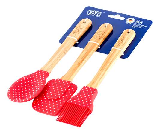 - Комплектация ложка поварская 26,5 см - 1 шт; лопатка поварская 25,5 см - 1 шт; кисточка поварская 26 см - 1 шт