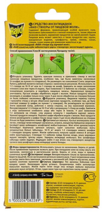 - Способ применения удалить красную полоску и приклеить стикер в местах хранения пищевых продуктов