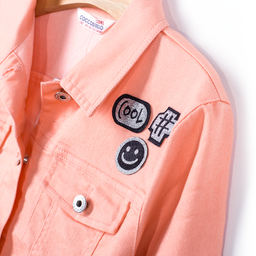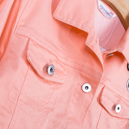 Стильная легкая трикотажная курточка-жакет с двумя видами карманов, удобными кнопками и красивыми нашивками на одном плече. Выполнена из натурального неаллергенного материала, отличный вариант для теплой весны и лета.