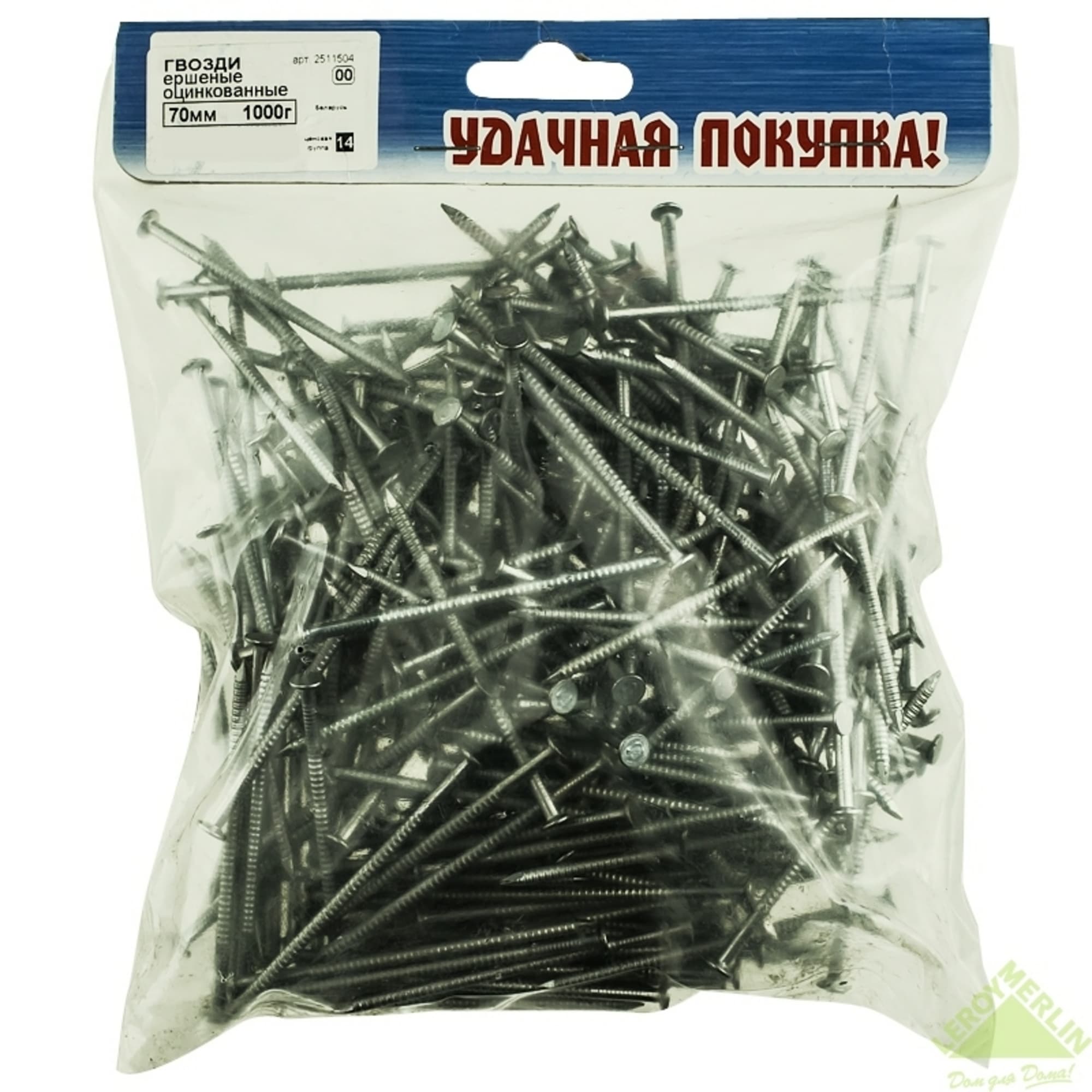 Гвоздь ершеный оцинкованный 70 мм, 1,0 кг