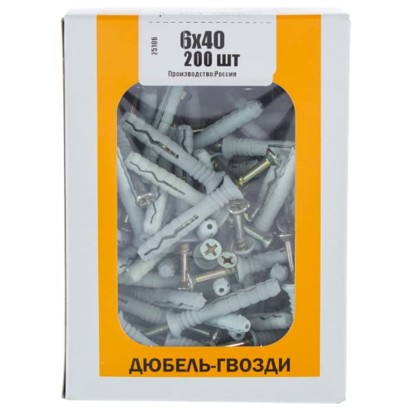 Дюбель-гвоздь с потайной манжетой 6х40 мм полипропилен 200 шт.