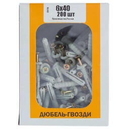 Дюбель-гвоздь с грибовидной манжетой 6х40 мм полипропилен 200 шт.