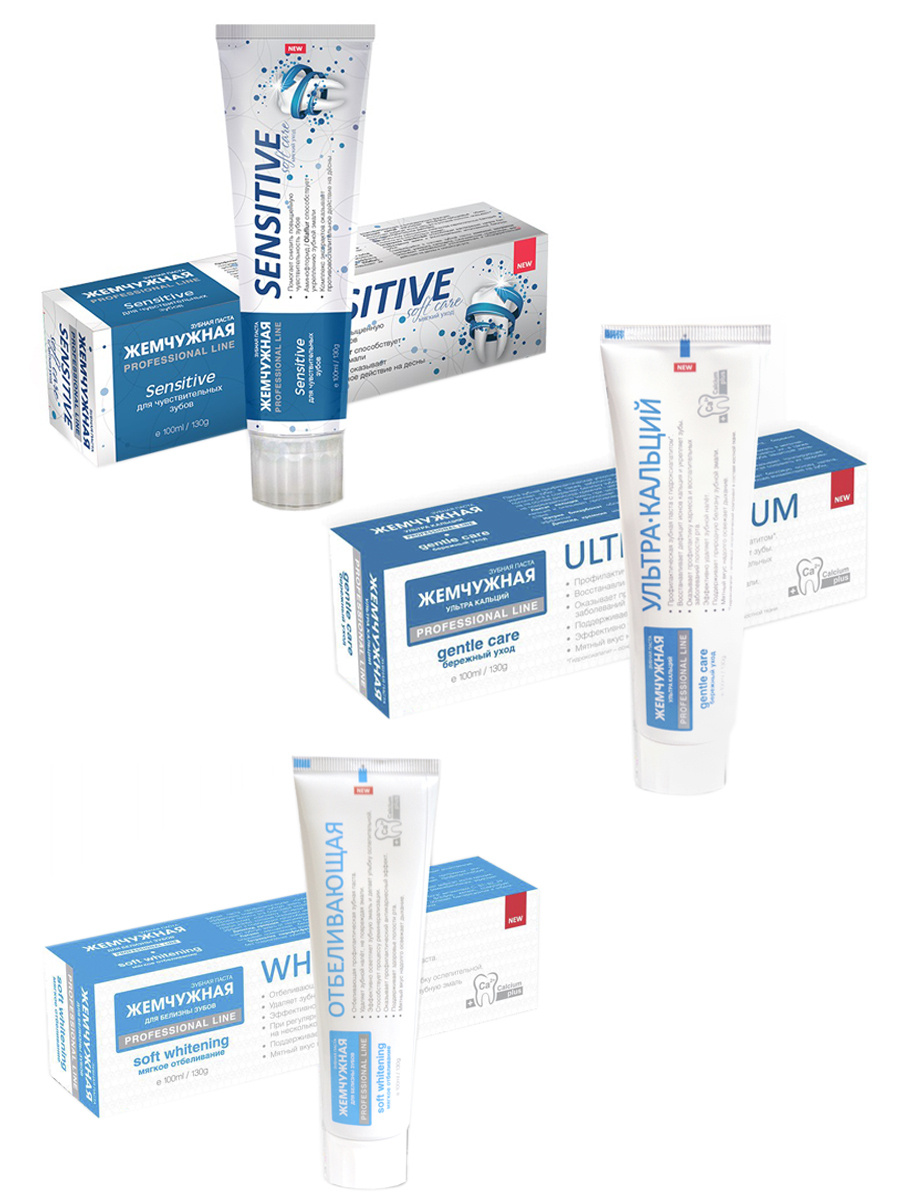 - Состав 1. Dicalcium Phosphate Dihydrate (Дикальцийфосфат дигидрат), Sorbitol, Aqua, Glycerin, Silica, Hydroxyapatite (Гидроксиапатит), Sodium Lauroyl Sarcosinate, Cellulose Gum, Potassium Nitrate (Калия нитрат), Sodium Lauryl Sulfate, Polyethylene Glycol (PEG-400), Olaflur (Аминофторид), Aroma, Xylitol, Sodium Fluoride (Натрия фторид), Tetrapotassium Pyrophosphate (Тетракалия пирофосфат), Calcium Lactate (Кальция лактат), Sodium Saccharin, Chamomilla Recutita (Matricaria) Extract (And) Calendula Officinalis Flower Extract (And) Salvia Officinalis Essential Extract (And) Achillea Millefol Extract (Экстракт ромашки (и) Экстракт календулы (и) Экстракт тысячелистника (и) Экстракт шалфея), Plantago Major Leaf Extract (Экстракт подорожника), Acorus Calamus (Sweet Flag) Root Extract (Экстракт аира), Sodium Methylparaben, Sodium Propylparaben. Массовая доля фторида – 0,12±0,02 %.2. Sorbitol, Aqua, Silica (Кремния Диоксид), Sodium Lauryl Sulfate, Cellulose Gum, PEG-400, Aroma, Rosae Рingue Fructuum Extract (Экстракт Шиповника), Titanium Dioxide, Calcium Lactate (Кальция Лактат), Sodium Bicarbonate (Натрия Бикарбонат), Hydroxyapatite (Гидроксиапатит), Papain (Папаин), Sodium Methylparaben, Sodium Propylparaben, PVP, Menthol (Ментол), Sodium Saccharin. Массовая доля фторида (в расчете на молярную массу фтора) – 0,11±0,02 % 3. Sorbitol, Silica (Кремния Диоксид), Aqua, Glycerin, PEG-400, Sodium Lauryl Sulfate, Aroma, Sodium Monofluorophosphate (Натрия Монофторфосфат), Xanthan Gum, Tetrapotassium Pyrophosphate (Тетракалия Пирофосфат), Calcium Lactate (Кальция Лактат), Sodium Saccharin, Citrus Limonium Extract (Экстракт Лимона), Papain (Папаин), Sodium Methylparaben, Sodium Propylparaben, Starphere (Гранулы), CI 42090. Массовая доля фторида (в расчете на молярную массу фтора) – 0,11±0,02 %