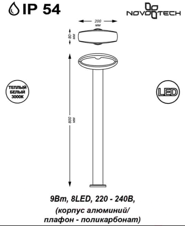 • Тип светильник уличный