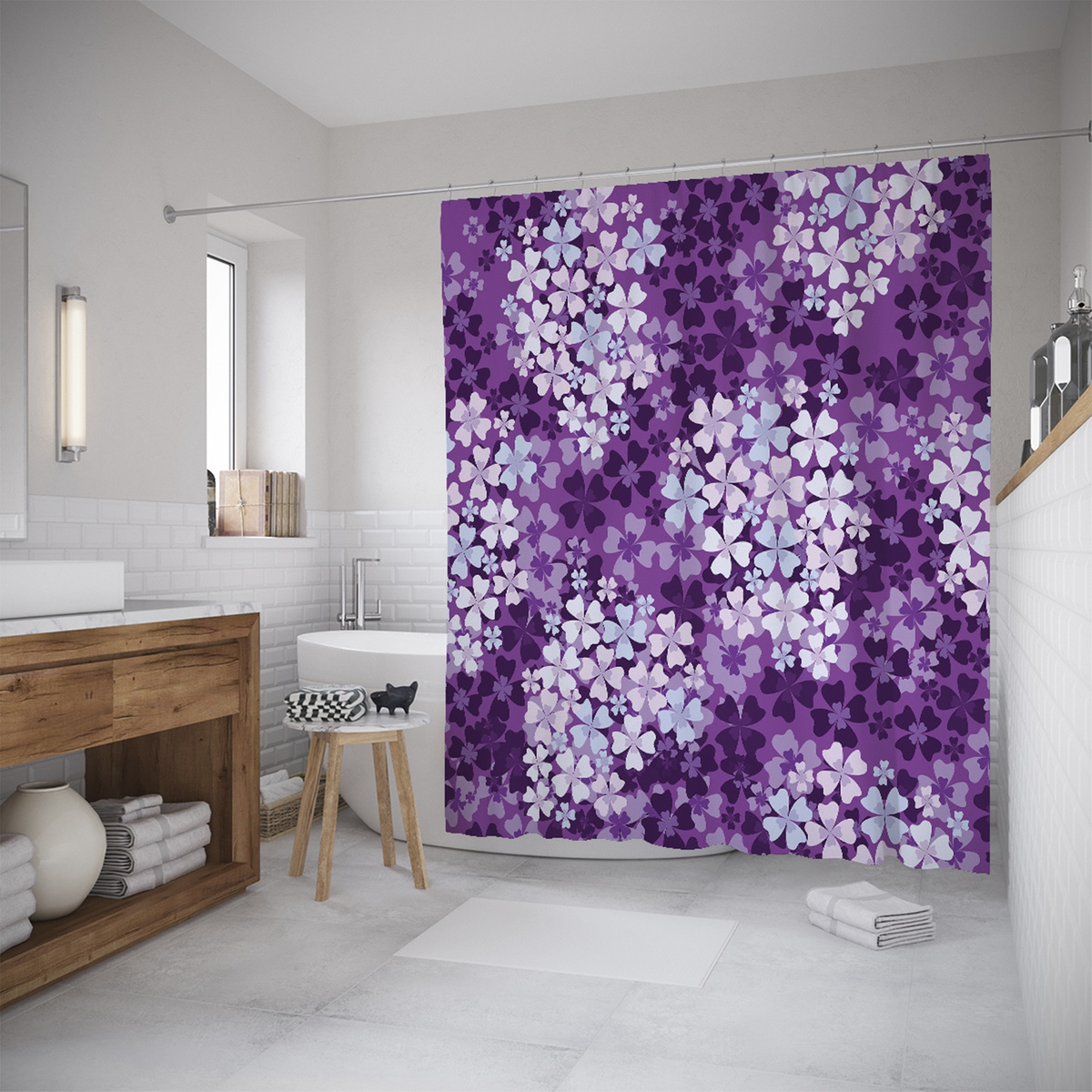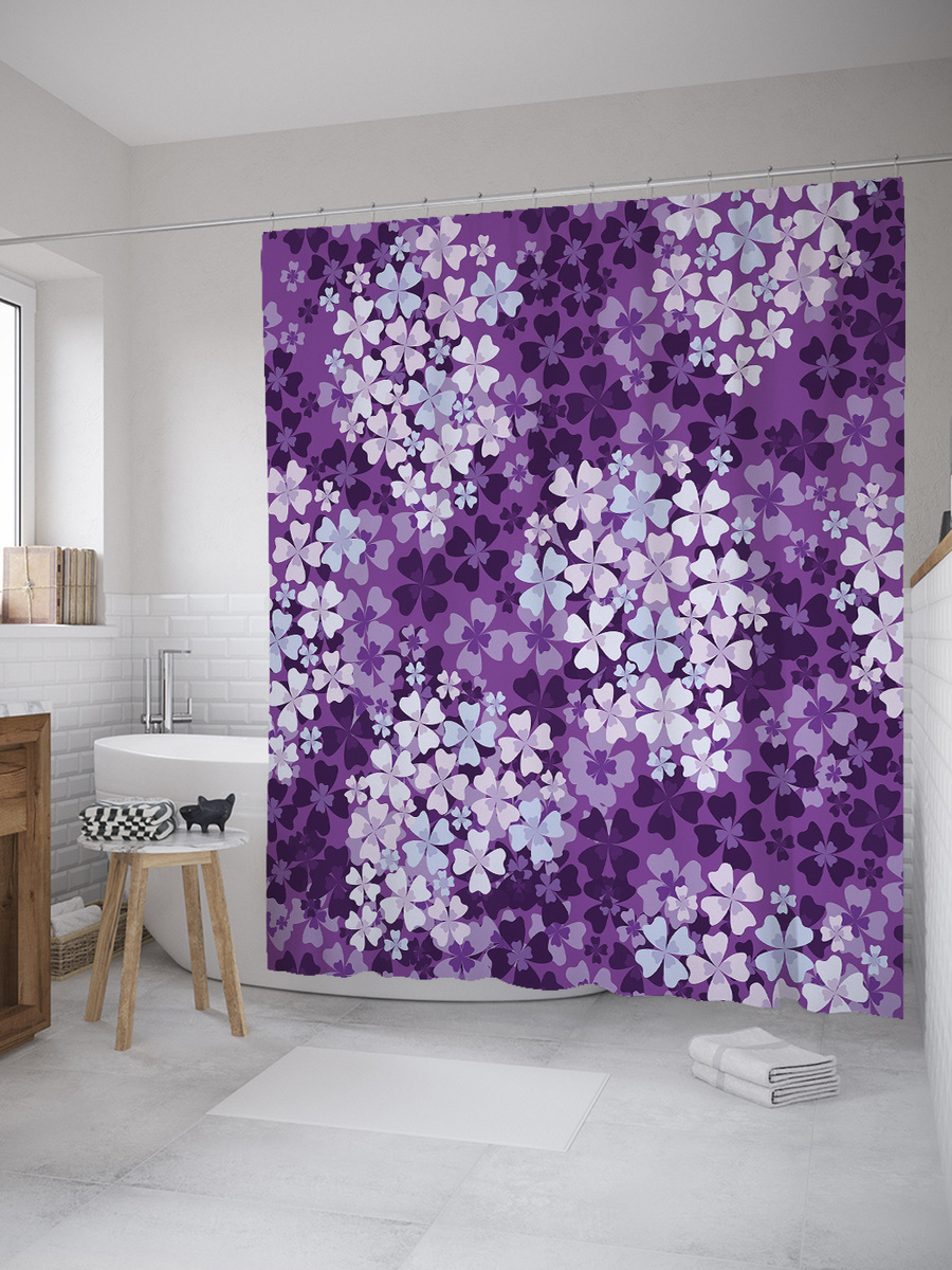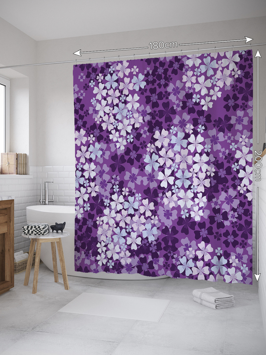 Штора (занавеска) для ванной "Яркая сирень" из ткани, 180х200 см с крючками