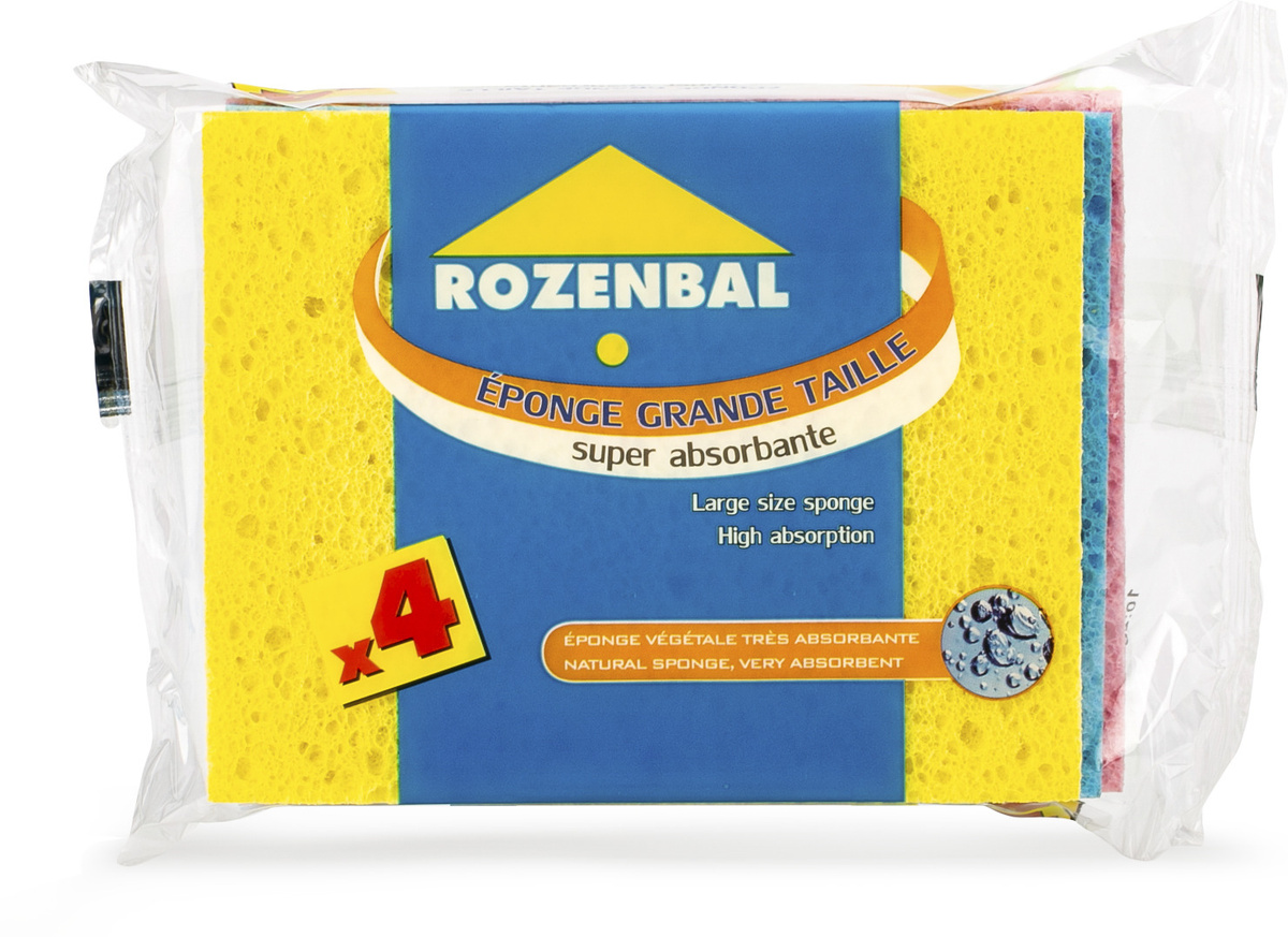 Губки для посуды "Rozenbal", многофункциональные, натуральные, цвет: мультиколор, 4 шт. R148009