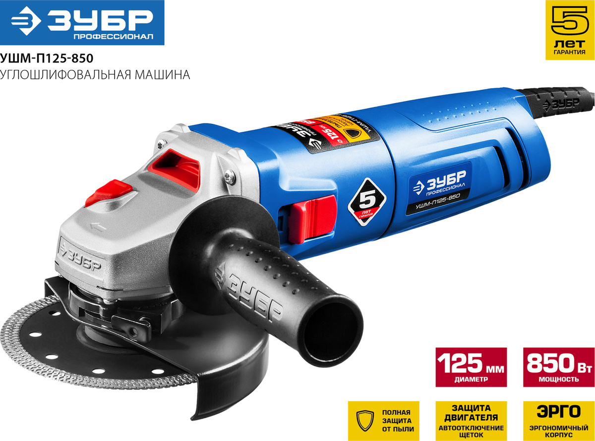 Шлифмашина угловая ЗУБР Профессионал УШМ-П125-850