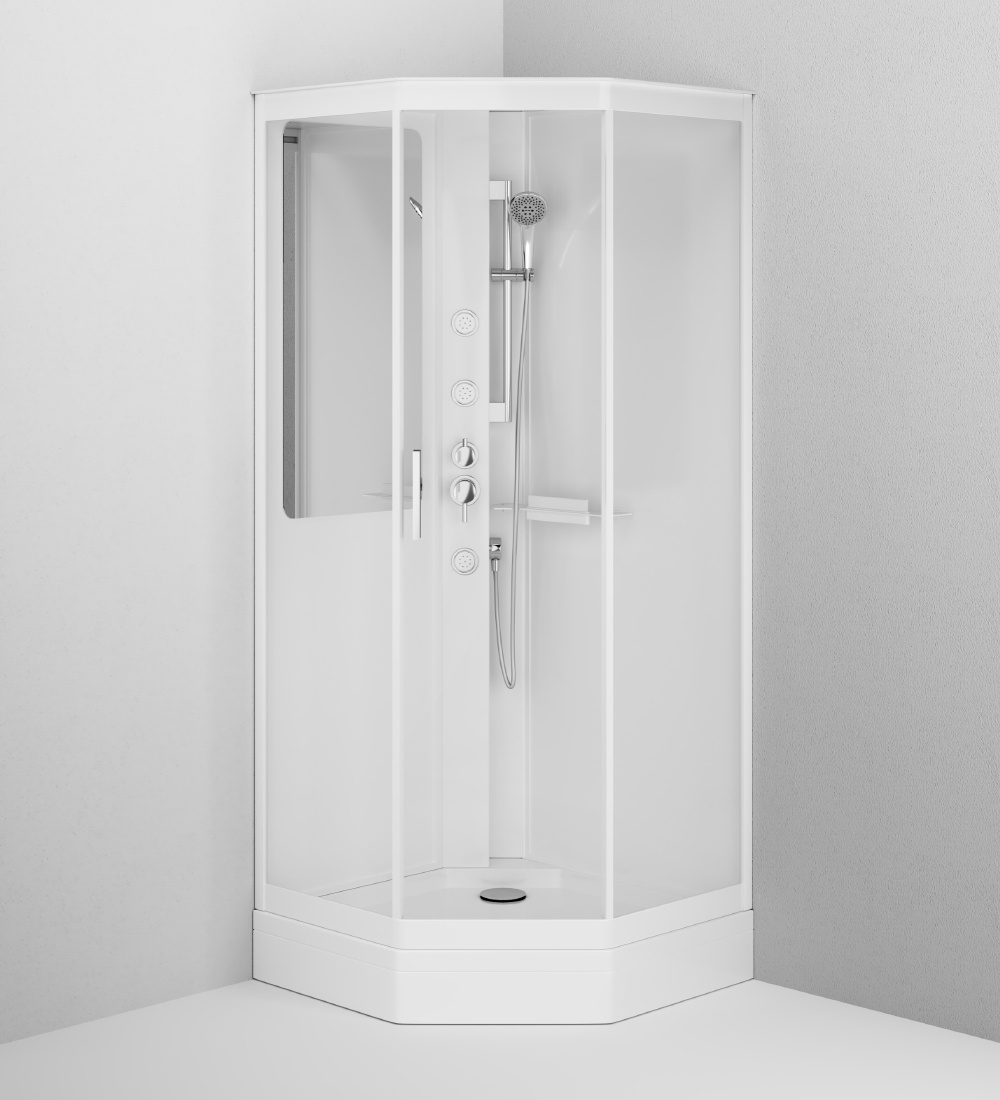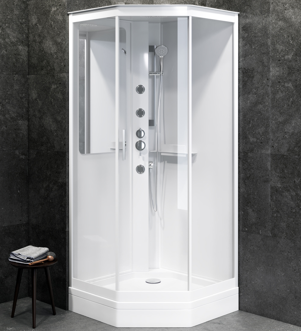 Гидромассажная кабина AM.PM Gem W90C-018-090WTA 90х90, профиль белый, стекло прозрачное