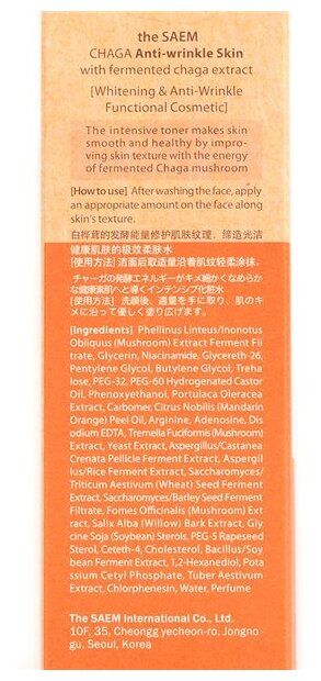 - Состав phellinus linteus/inonotus obliquus (mushroom) extract ferment filtrate, glycerin, niacinamide, glycereth-26, pentylene glycol, butylene glycol, trehalose, peg-32, peg-60 hydrogenated castor oil, phenoxyethanol, butylene glycol, portulaca oleracea extract, carbomer, citrus nobilis (mandarin orange) peel oil, adenosine, arginine, tremella fuciformis (mushroom) extract, yeast extract, aspergillus/castanea crenata pellicle ferment extract, aspergillus/rice ferment extract, aspergillus/rice ferment extract, saccharomyces/barley seed ferment filtrate, butylene glycol, fomes officinalis (mushroom) extract, water, salix alba (willow) bark extract, water, butylene glycol, tuber aestivum extract, disodium edta, perfume, butylene glycol, phellinus linteus/inonotus obliquus (mushroom)extract ferment filtrate, glycine soja (soybean) sterols, peg-5 rapeseed sterol, ceteth-4, cholesterol, bacillus/soybean ferment extract, 1,2-hexanediol, potassium cetyl phosphate, chlorphenesin