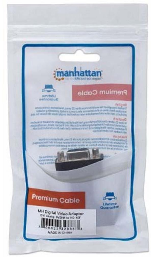 Перехідник DVI to VGA Manhattan (328883) - це просте підключення DVI з VGA, ідеально підходить для всіх моніторів. Не вимагає складної конфігурації або установки. Інтегрована конструкція спрощує підключення і виключає плутанину і безлад в проводах. Особливості перехідника: інтегрована конструкція; повністю екранований; DVI M-HD15 F.