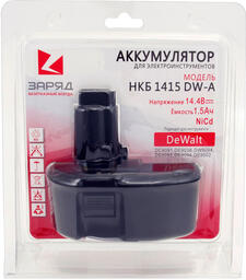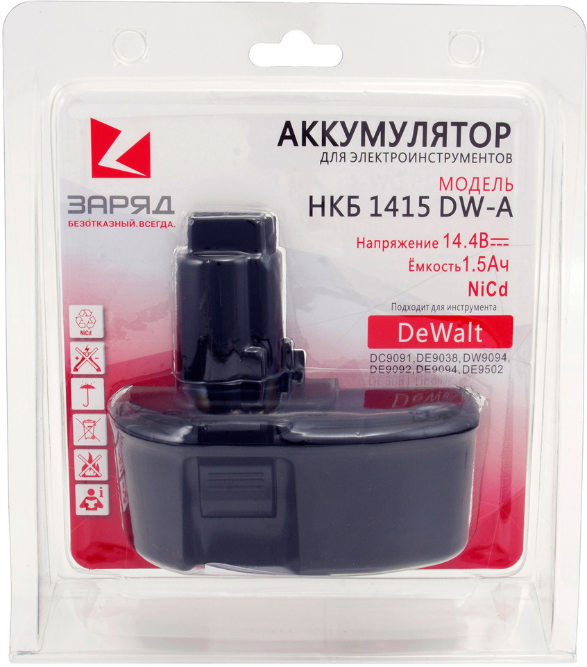 Аккумулятор Заряд НКБ-1415-DW-A для шуруповертов DeWalt, 14В, 1,5Ач, NiCd, черный