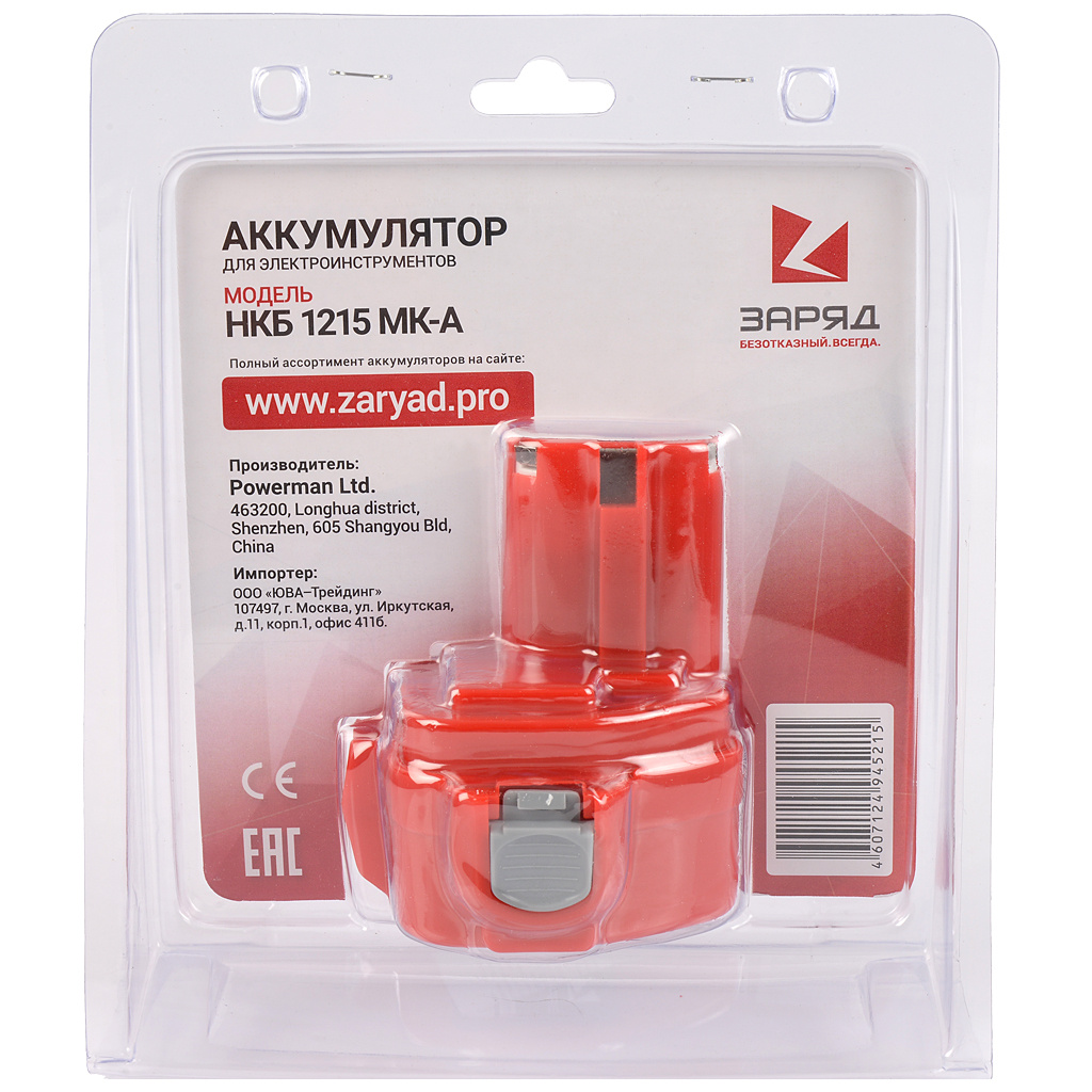 Аккумулятор Заряд "НКБ 1215 МК-A", для шуруповертов Makita 12.0В, 1.5Ач, NiCd