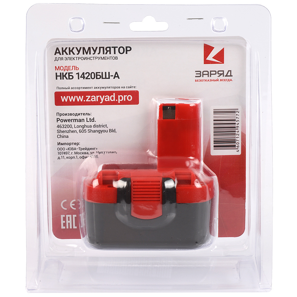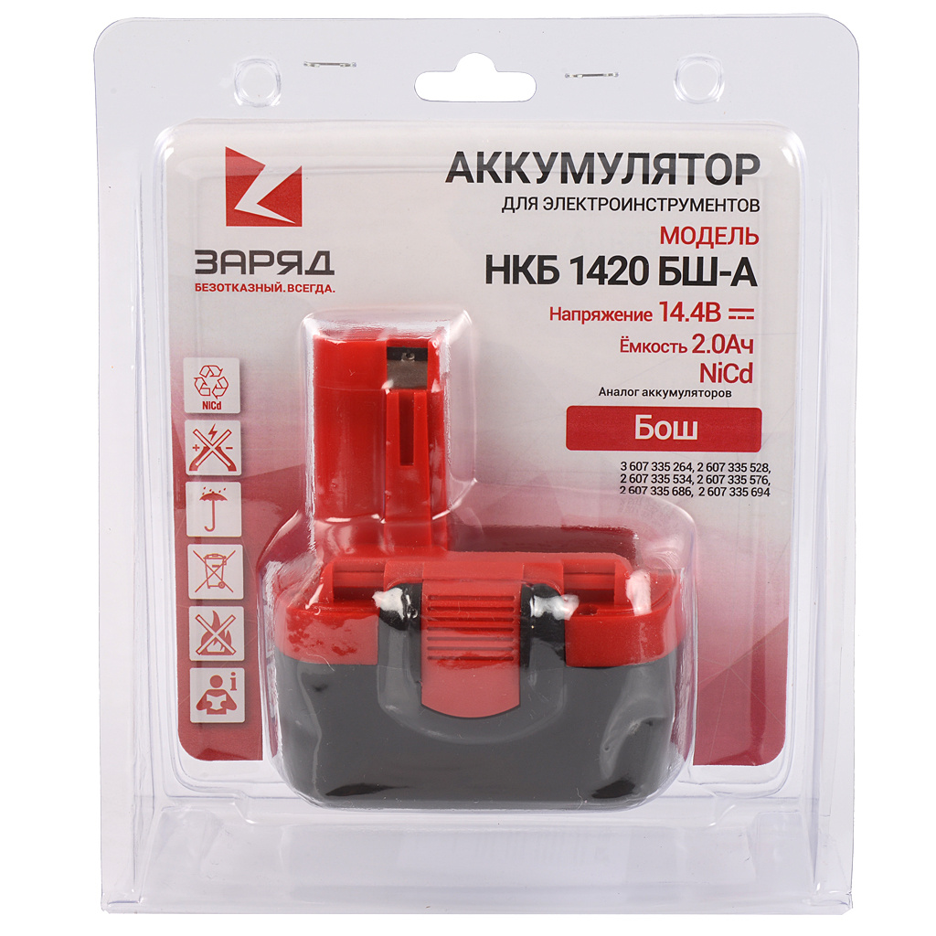 Аккумулятор Заряд "НКБ 1420 БШ-A", для шуруповертов Bosch 14.4В, 2.0Ач, NiCd