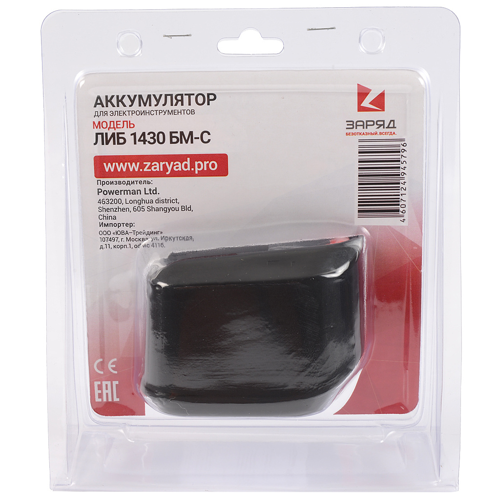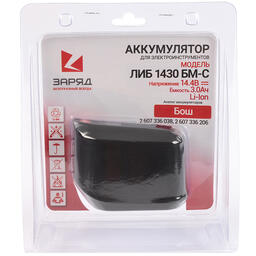 Аккумулятор Заряд "ЛИБ 1430 БМ-C", для шуруповертов Bosch, 14.4В, 3.0Ач, Li-Ion