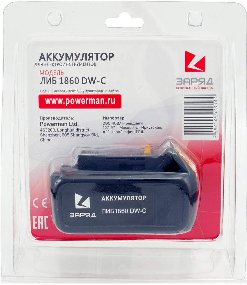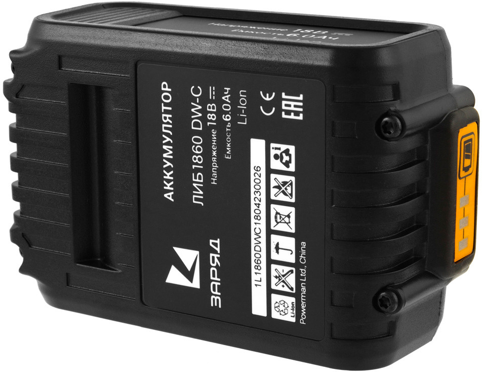 Аккумулятор Заряд ЛИБ-1860-DW-C для шуруповертов DeWalt, 6127312, черный