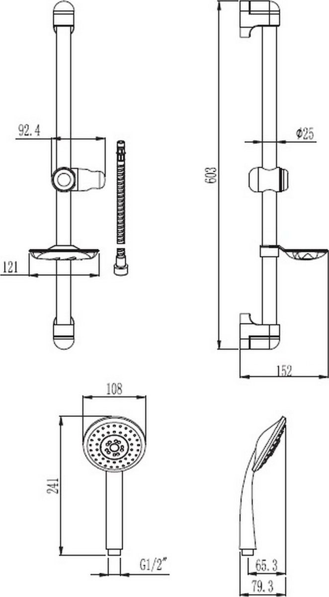 - Комплектация Душевая лейка, шланг, держатель, мыльница, крепления, инструкция