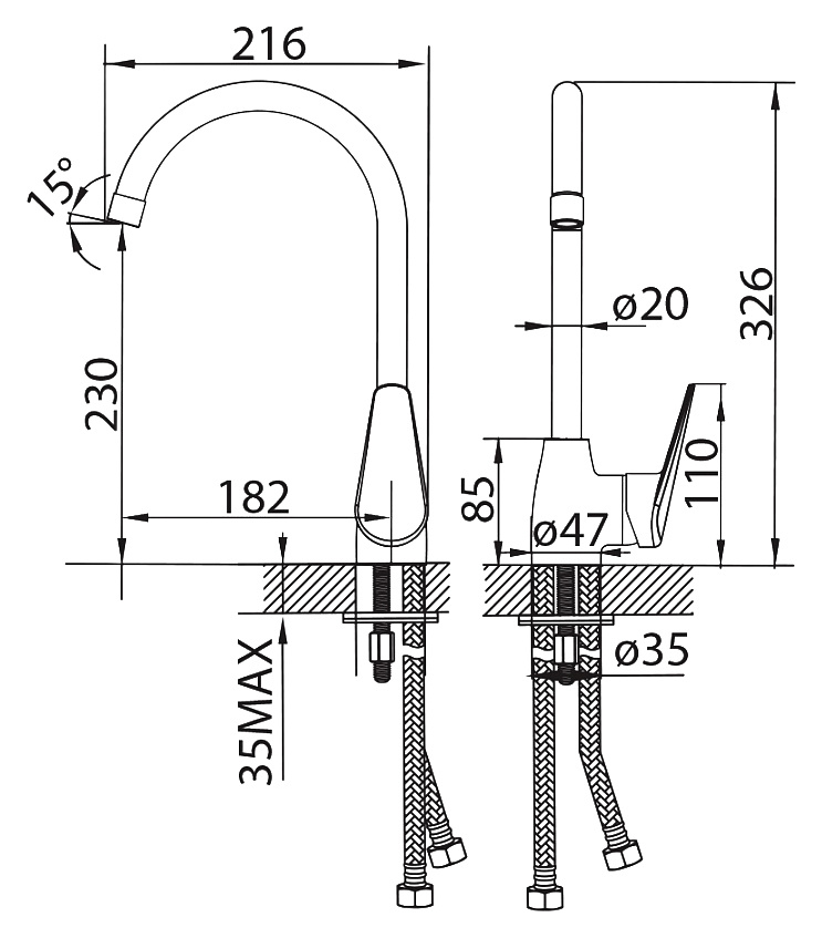 Смеситель для кухни Milardo Hudson HUDSB00M05