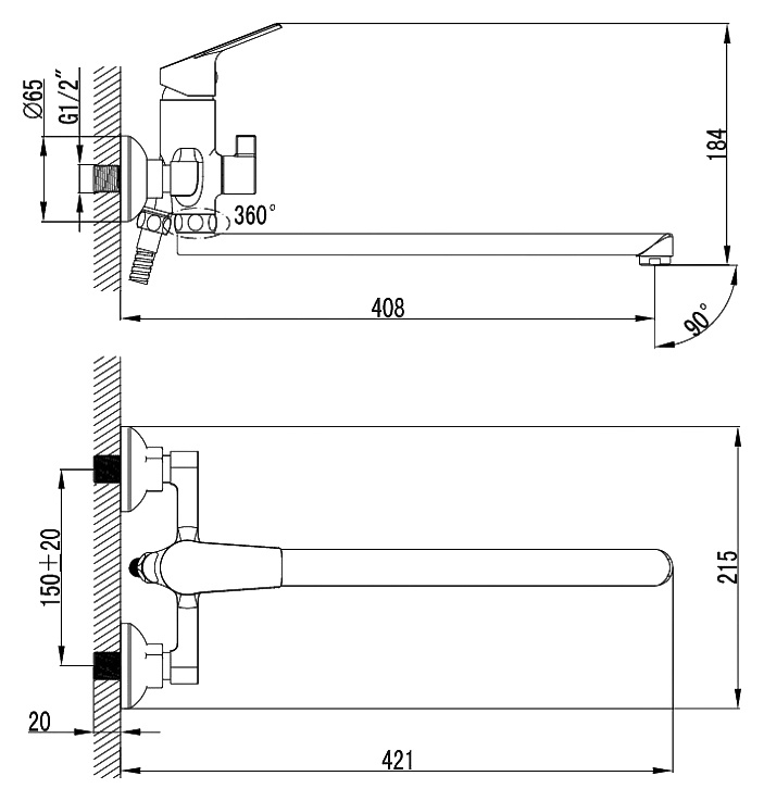 Смеситель для ванны Milardo Amur AMUSBLCM10 с длинным изливом