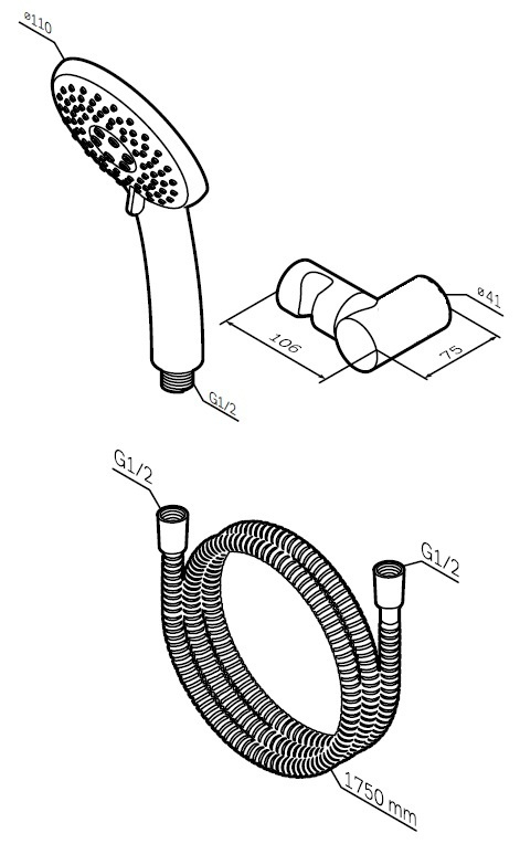 - Комплектация Шланг для душа;Держатель для лейки;Душевая лейка