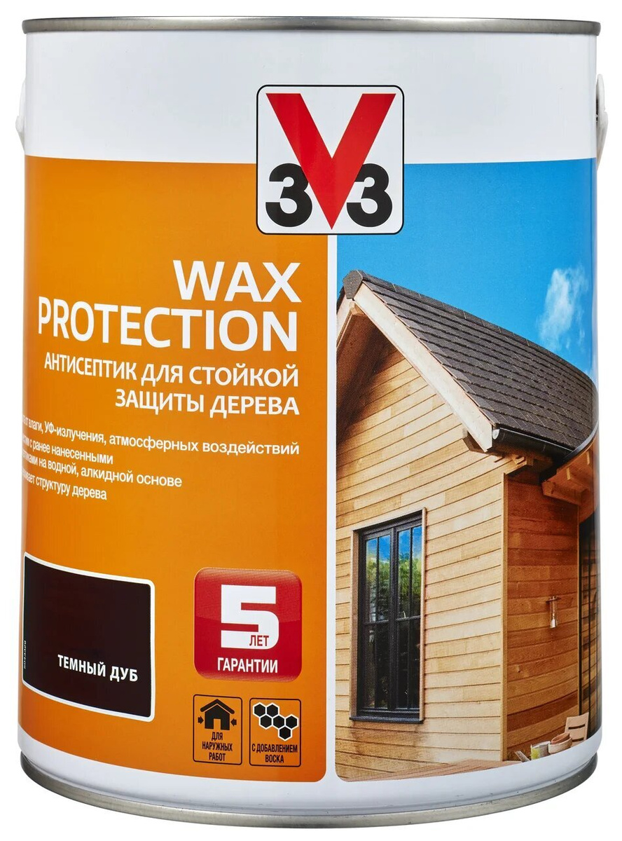 Антисептик для дерева V33 с добавлением воска "WAX protection" Темный дуб 0,9 л.
