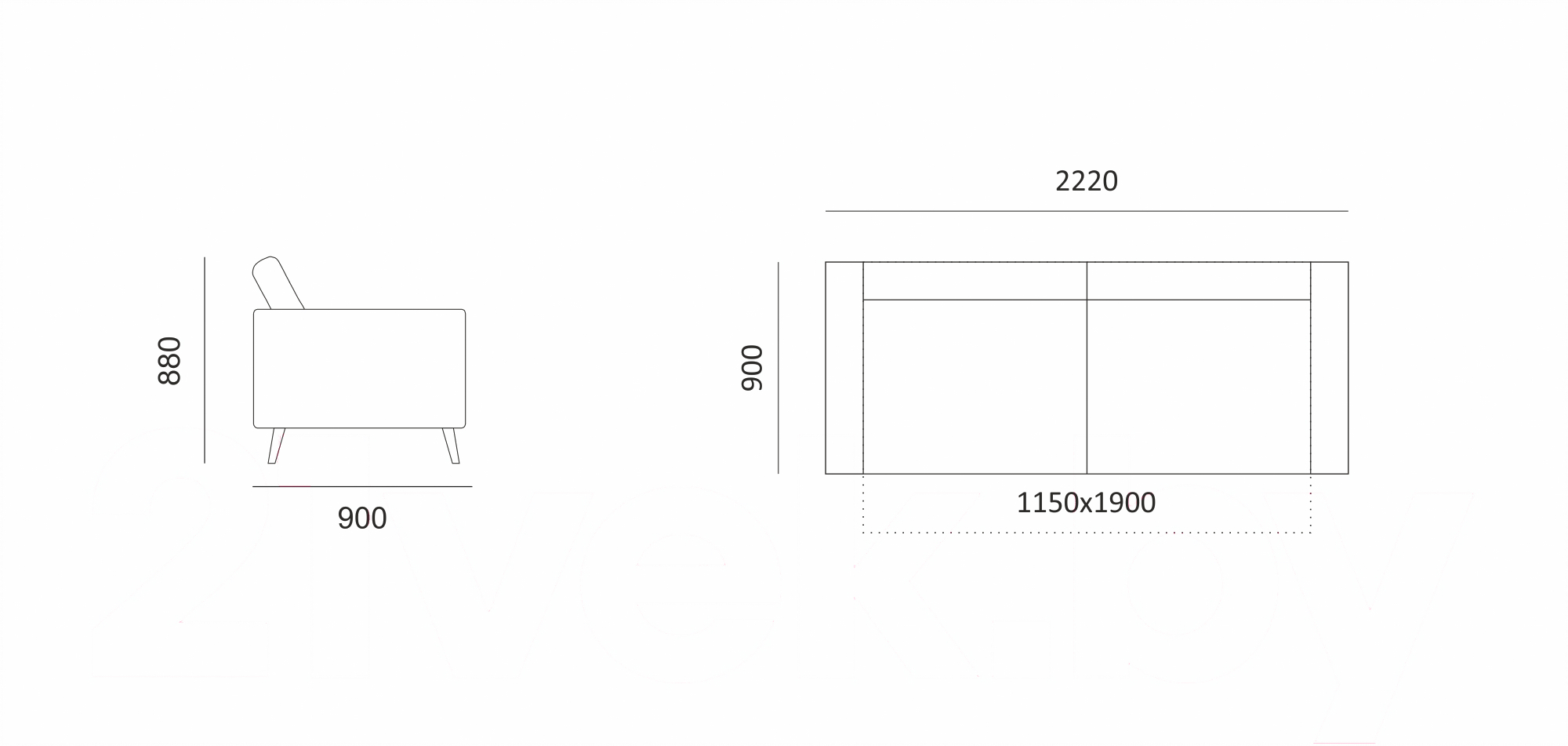 Диван La'Sofa Берген 222x90 (Ronda 09/серо-лиловый)