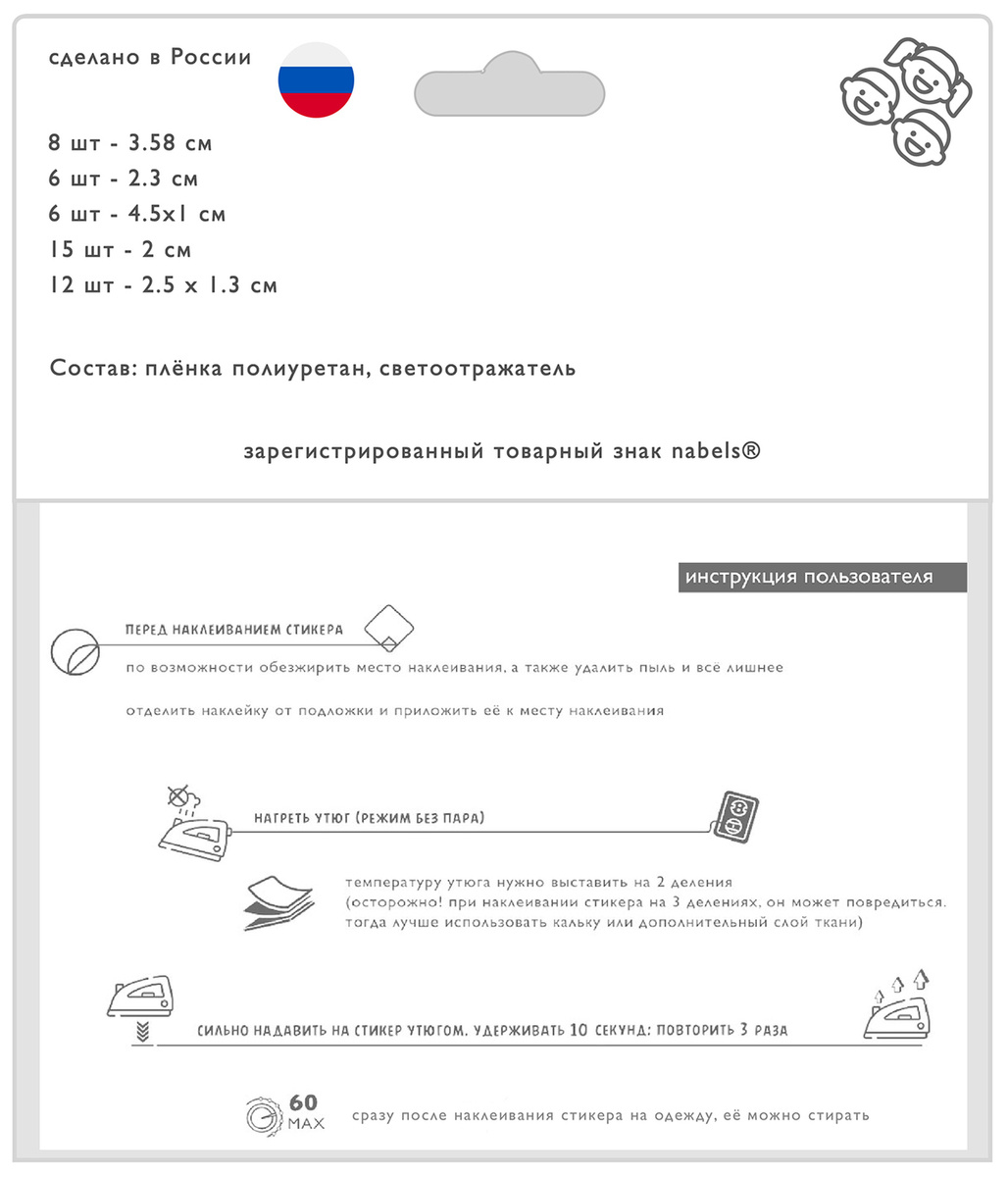 - Комплектация Материал: светоотражатель Кол-во: 5 форматов/47 наклеек Область применения: для любых типов мягких и тканевых поверхностей, в том числе джинсовых