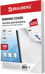 Обложки для переплета Brauberg, комплект 100 штук, тиснение под лен, А4, картон 250 г/м2, белые