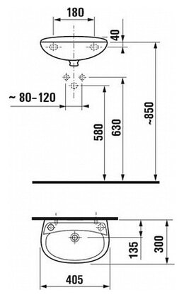 - Размеченные отверстия под смеситель 1, расположение слева
