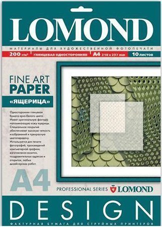 фотобумага дизайнерская односторонняя глянцевая, ярко-белого цвета с фактурой кожи ящериц для струйной печати, A4, 10 листов, 200 г/м2